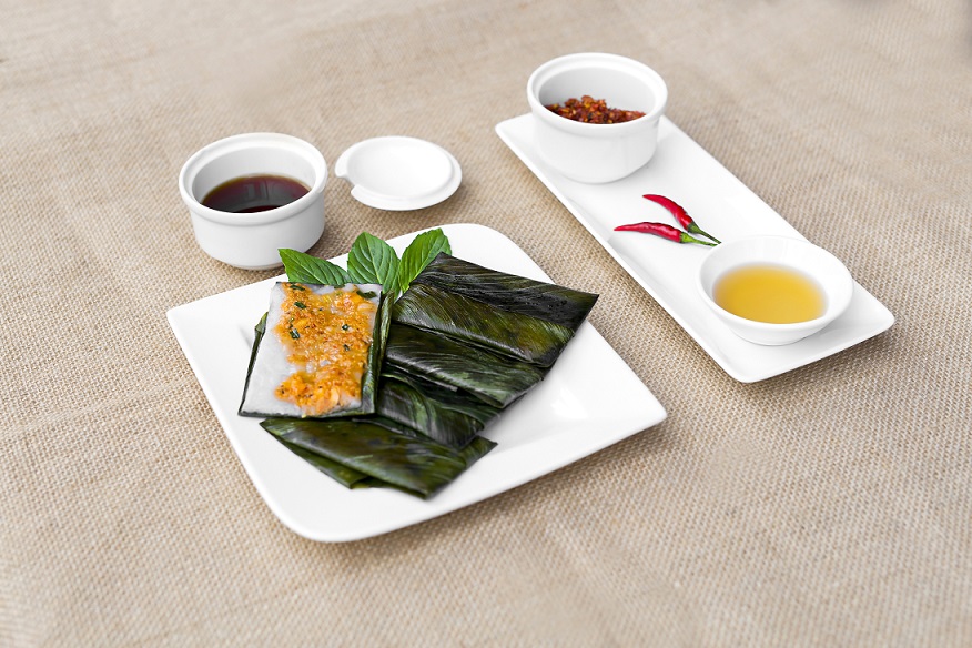 Vietnamese steamed rice pancake with shrimp or banh nam Hue