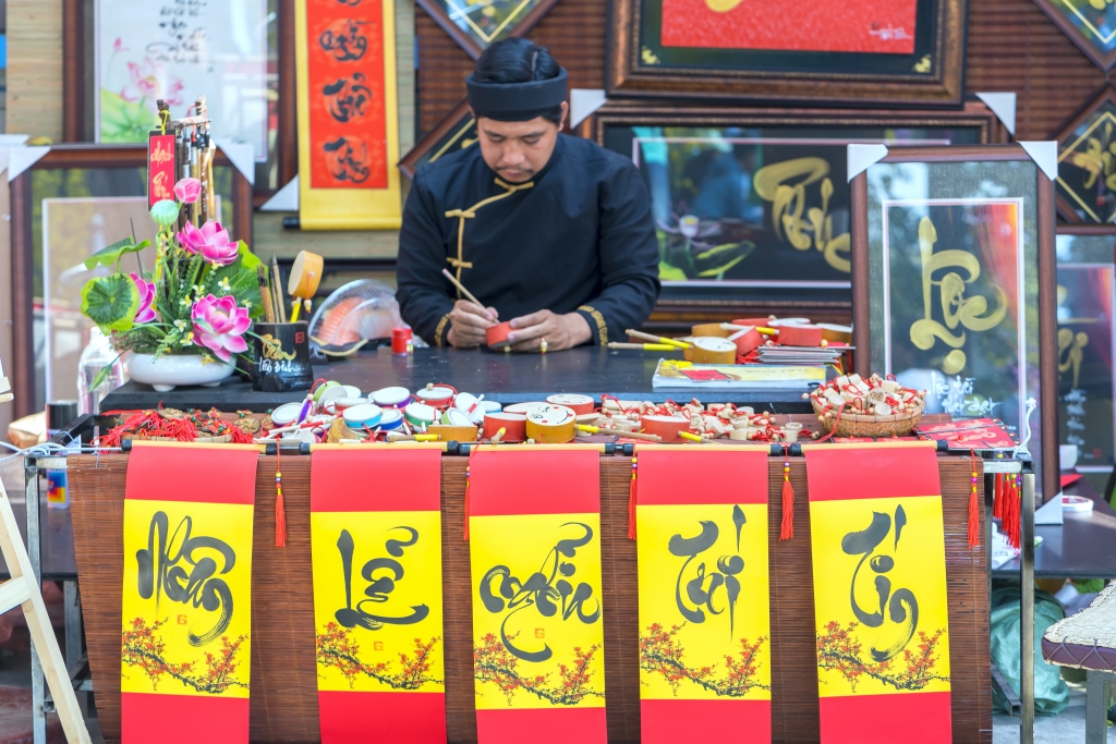 Ho Chi Minh City: Vietnamese scholar writes calligraphy at lunar new year calligraphy festival