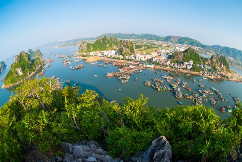 A view from the peak of Poem Mountain in Halong Bay