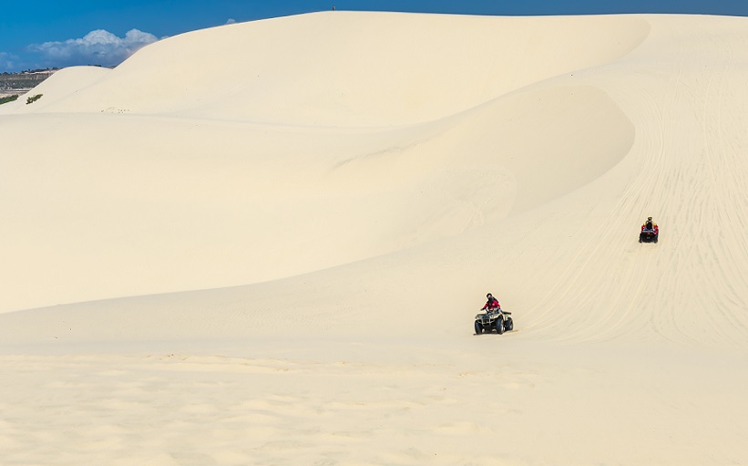 Travelers are experiencing the thrill of crossing the white sand dunes