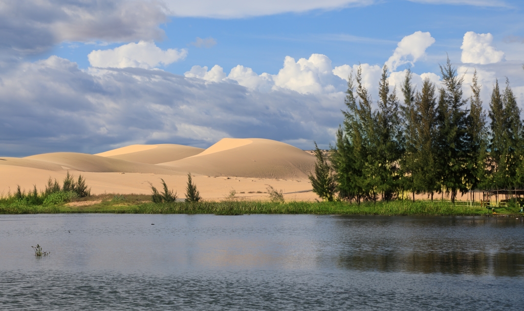 Beautiful lake and white sand dunes in Mui Ne, Vietnam