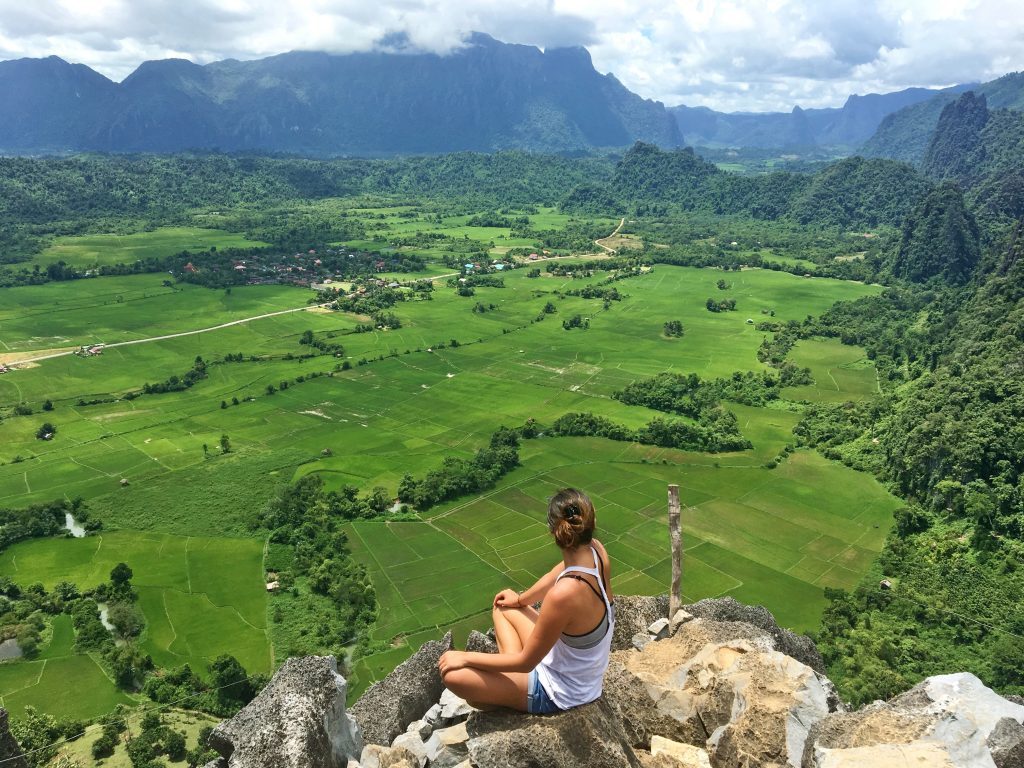 The view at the top was amazing and definitely worth the climb. Looking out over the Van Veing Valley stretching out below was reminiscent of the hot air balloon ride from the previous day. This valley was really beautiful displaying the verdant landscape of the valley below.